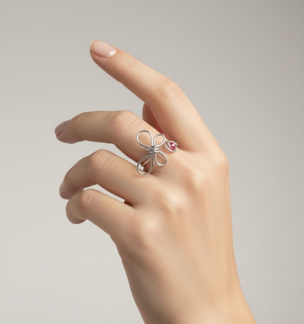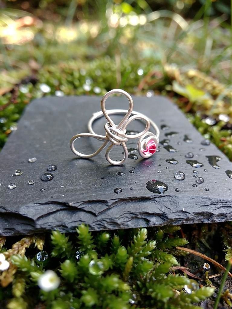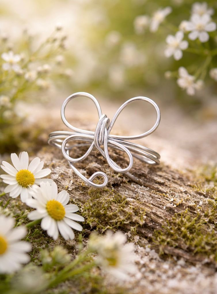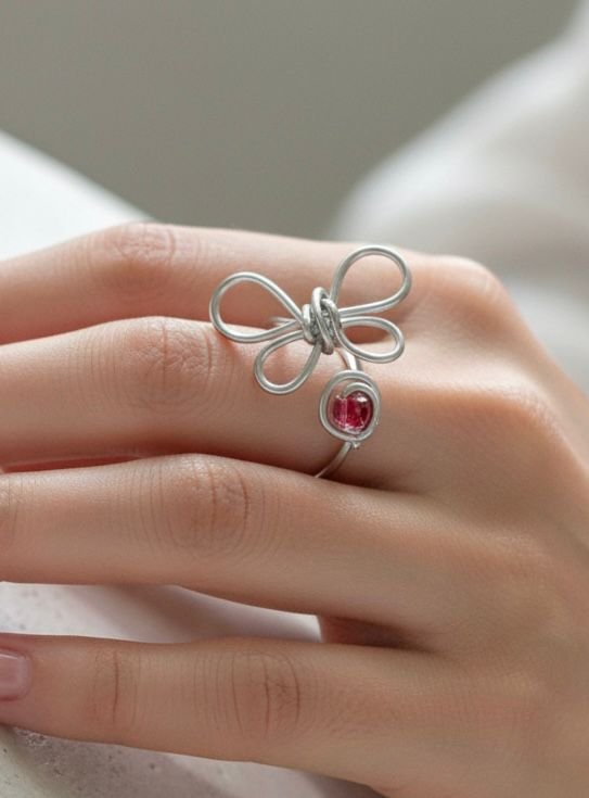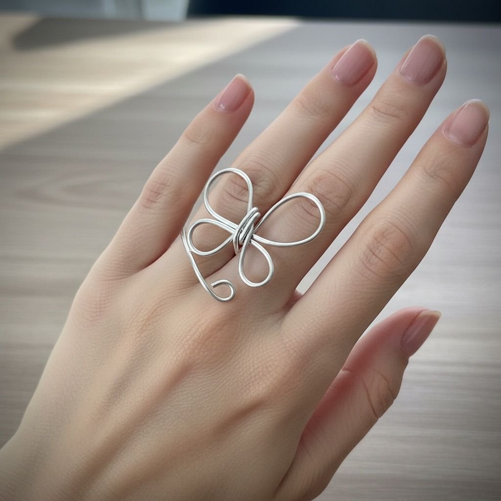 Farfalla di Luna è un anello leggero e poetico, realizzato interamente a mano modellando un filo di alluminio colorato fino a creare una farfalla stilizzata, simbolo di trasformazione, rinascita e libertà.