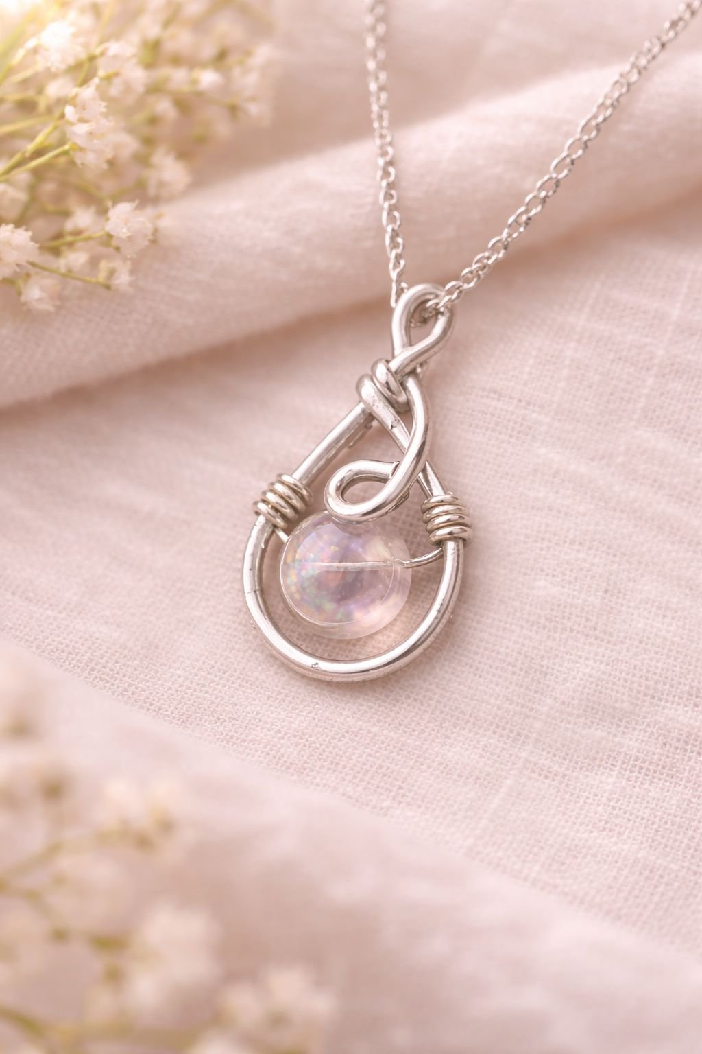 Riflesso Lunare è una collana che cattura la luce e la trattiene, come fa la luna nelle notti più chiare.